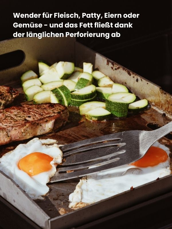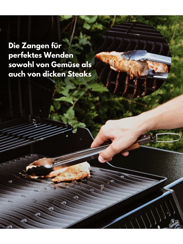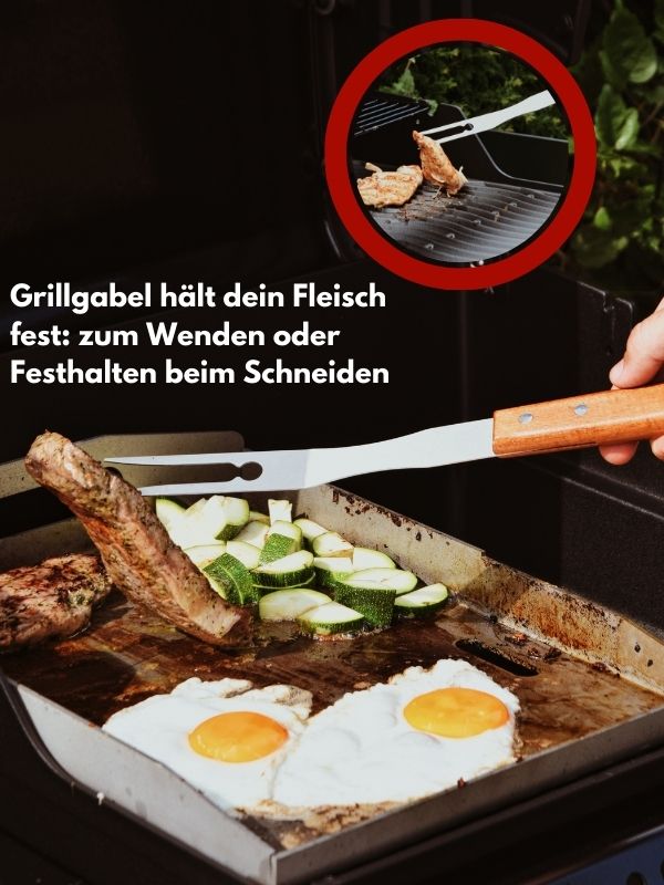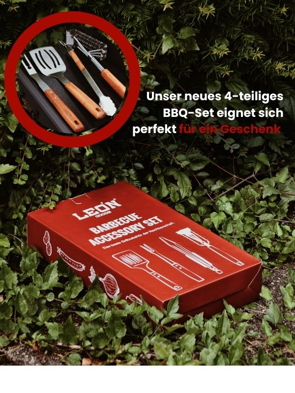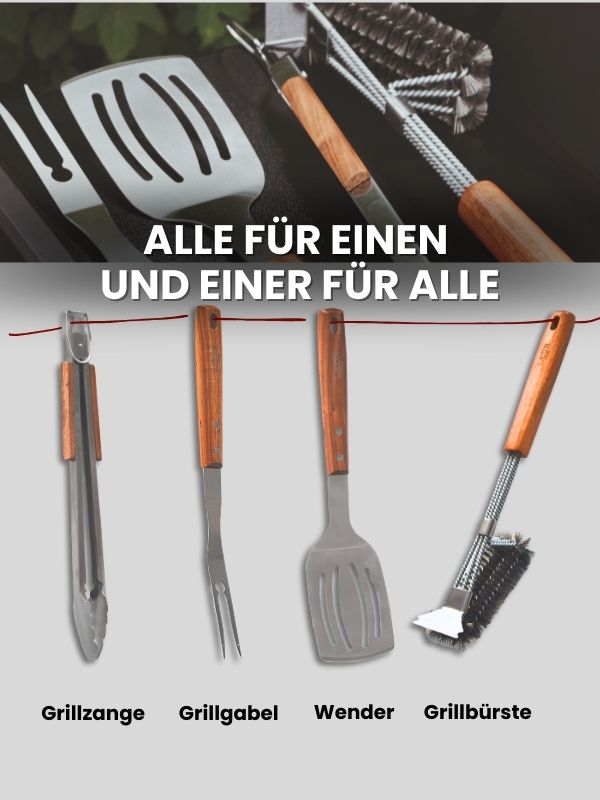 Grillbesteck Set (Grillbürste, Grillzange, Grillgabel & Grillwender - Edelstahl & Akazienholz)